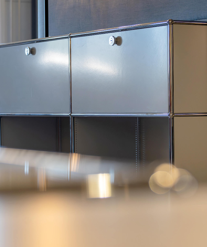 Modulare Möbel wie USM Haller, mobile Trennwände und flexible Sitzmöglichkeiten ermöglichen es, Arbeitsplätze je nach Bedarf anzupassen – sei es für Fokusarbeit, Meetings oder Gruppenprojekte. Auch wechselnde Teamgrössen lassen sich so mühelos berücksichtigen.