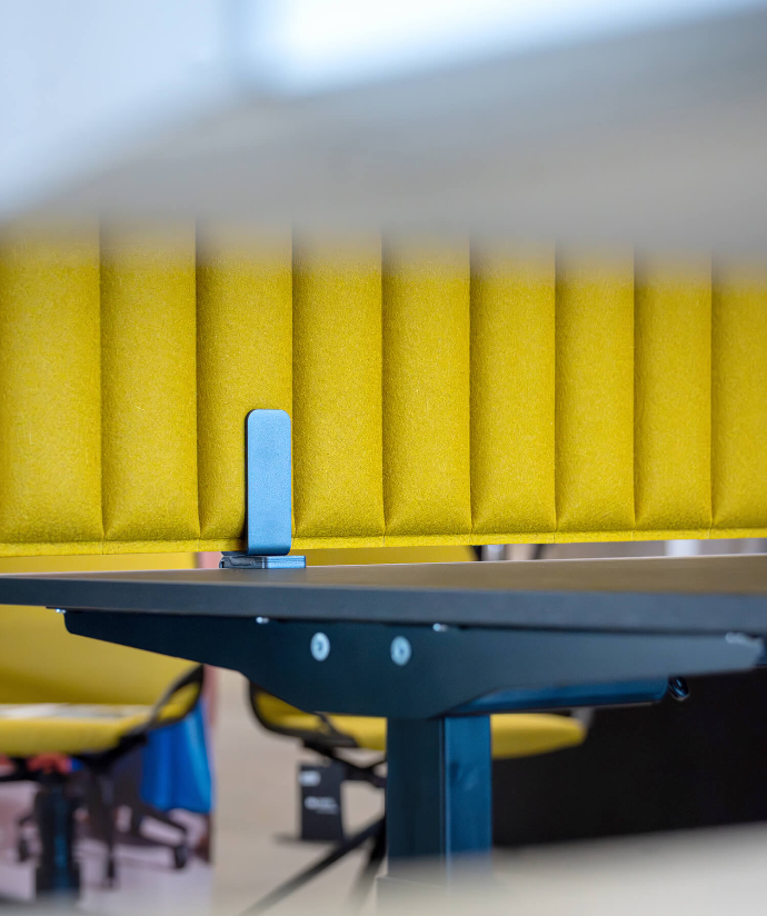 Lärm ist einer der grössten Störfaktoren im Büro. Schallabsorbierende Elemente wie Wandpaneele, Teppiche oder Akustikboxen schaffen eine ruhigere Atmosphäre. Besonders praktisch sind Telefon- und Akustikboxen, die Rückzugsorte für vertrauliche Gespräche oder konzentriertes Arbeiten bieten.